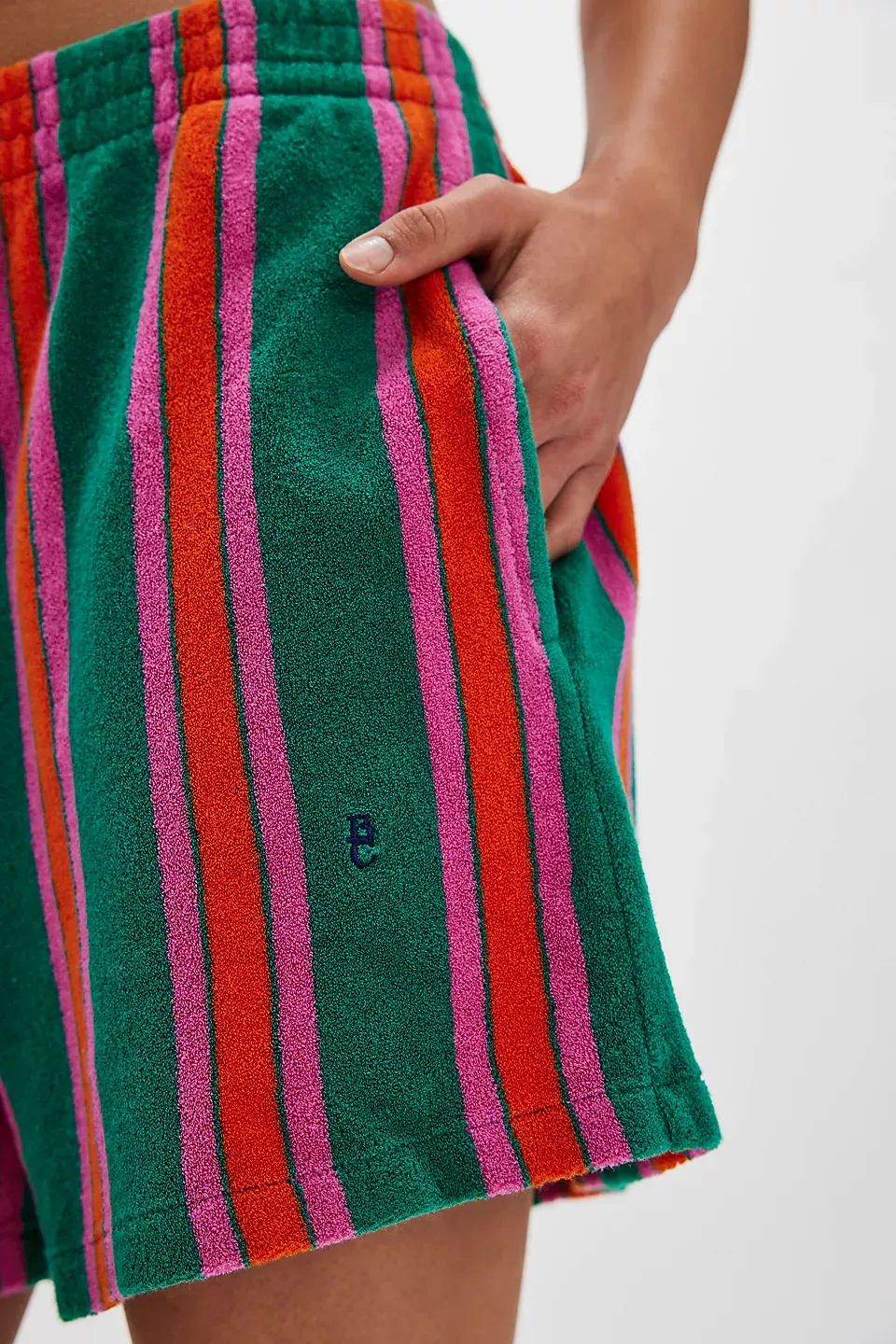 So soft in a terry fabrication, these classic shorts from Bobo Choses will be your new beach-to-street staple.**Fit:** Mid-rise, relaxed boxer fit  **Features:** Pull-on design, towel terry fabrication, striped print throughout, side pockets  **Why We ? It:** Easy with your favorite tee or sleek with a tucked-in bodysuit, this pair has endless ways to wear.