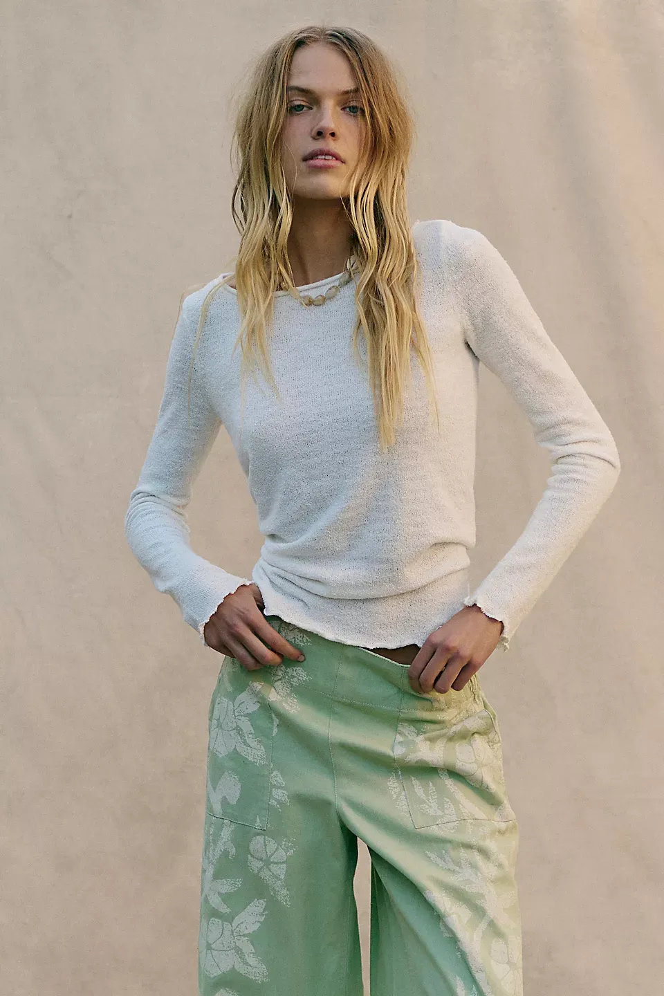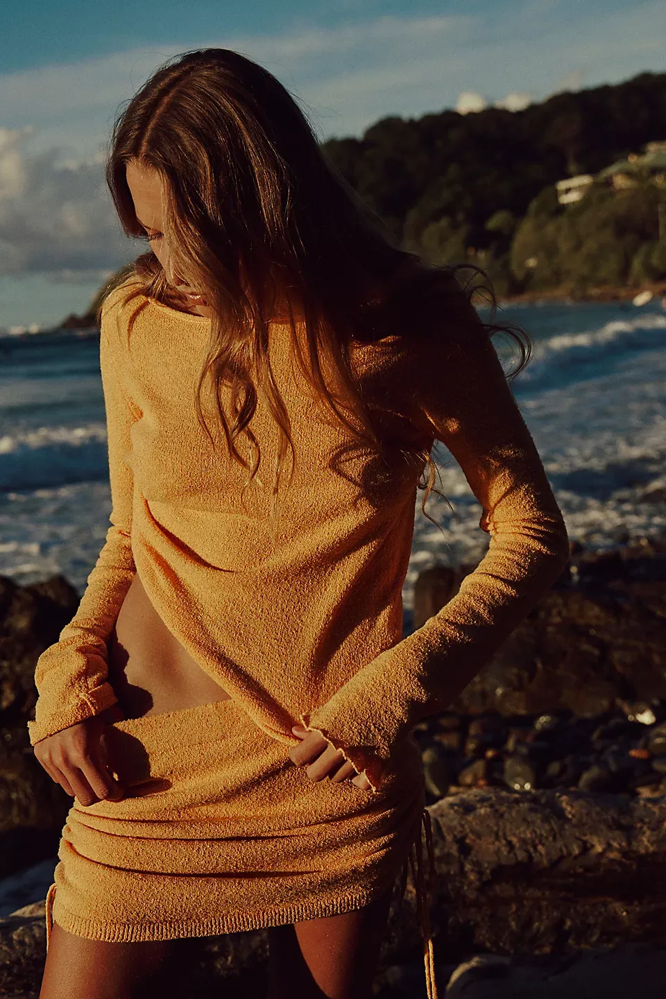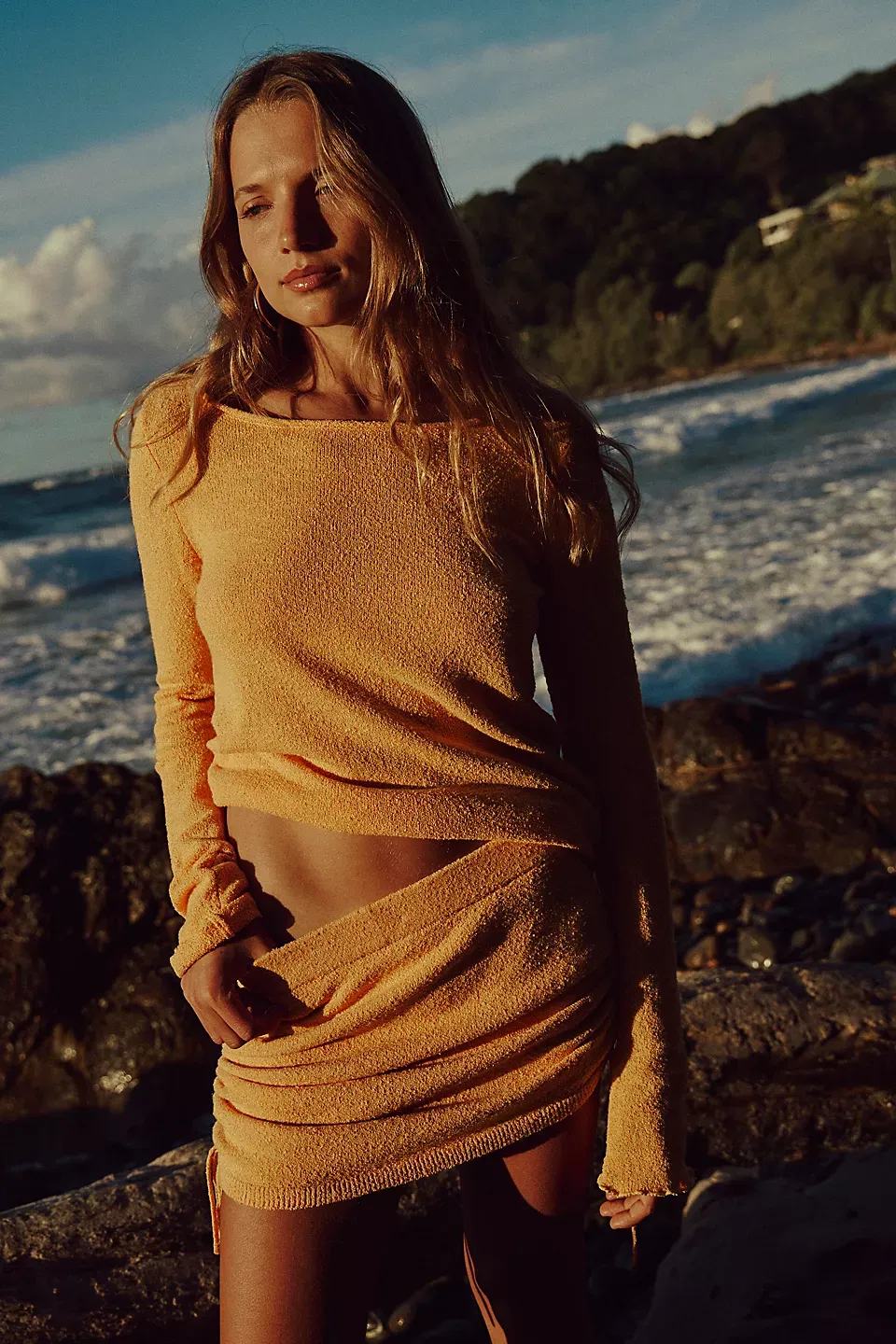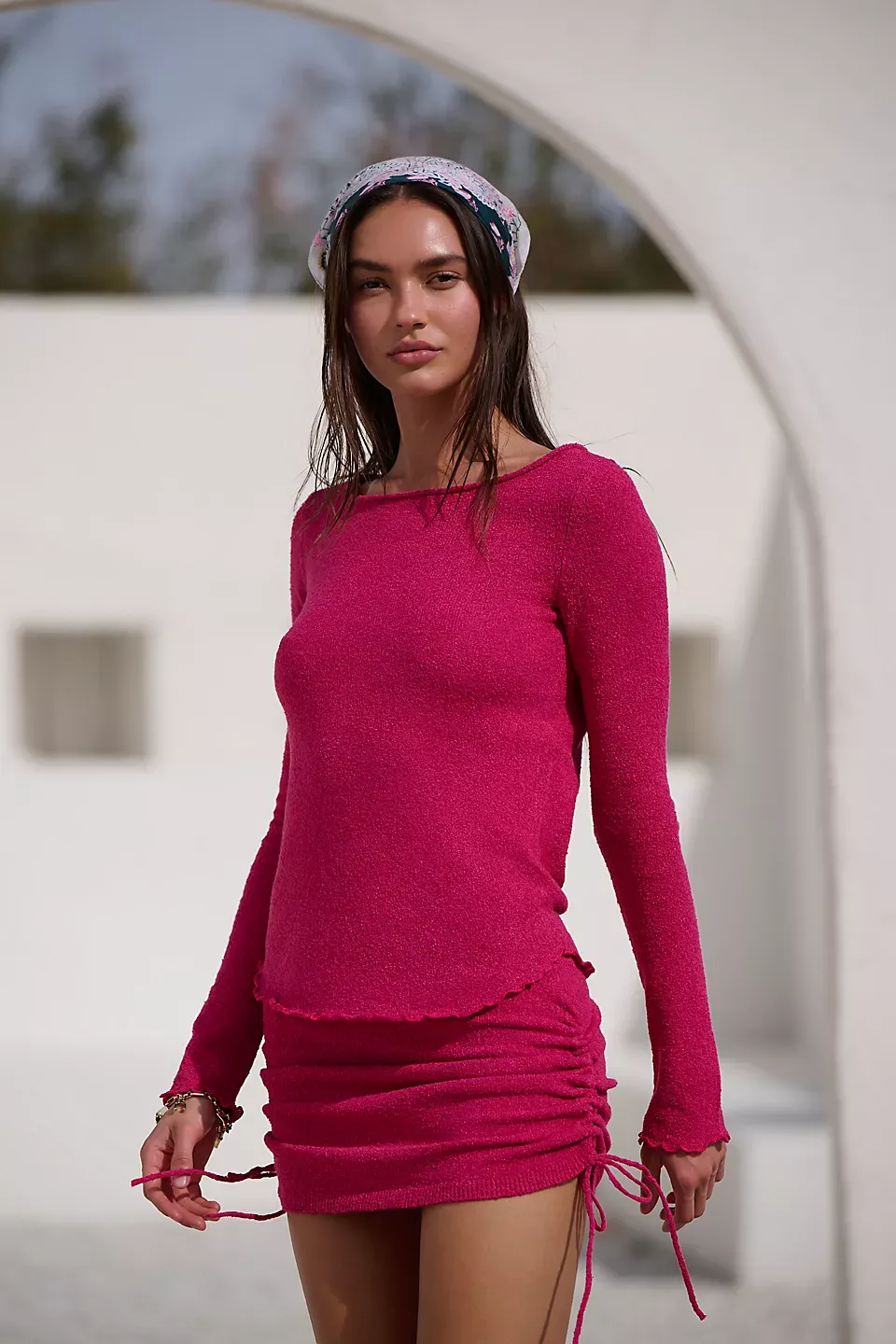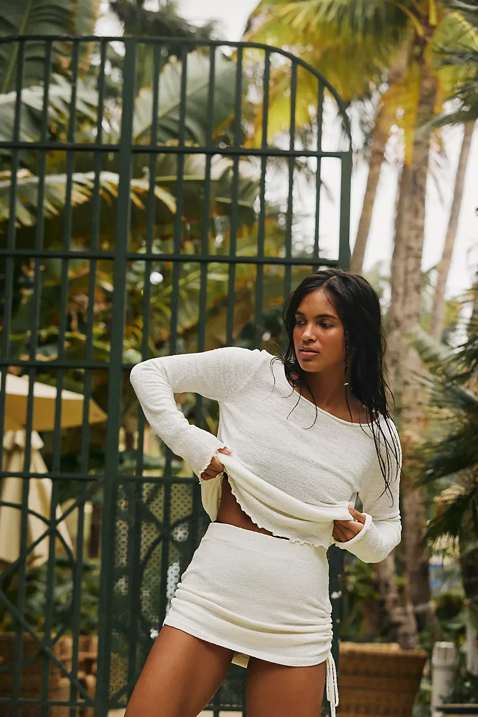 The perfect mix of cozy and elevated, this wear-everywhere skirt set from our free-est collection has endless ways to wear.**Fit:** Top: Relaxed, classic pullover design; Skirt: Slim, bodycon fit **Features:** Top: Crew neckline, lettuce-edged hem, cozy knit fabrication; Skirt: Pull-on design, cinch tie detail at the sides, coordinating fabrication **Why We ? It:** Sleek with strappy heels or off duty with beachy sandals, you’ll be reaching for this from the resort to running errands.