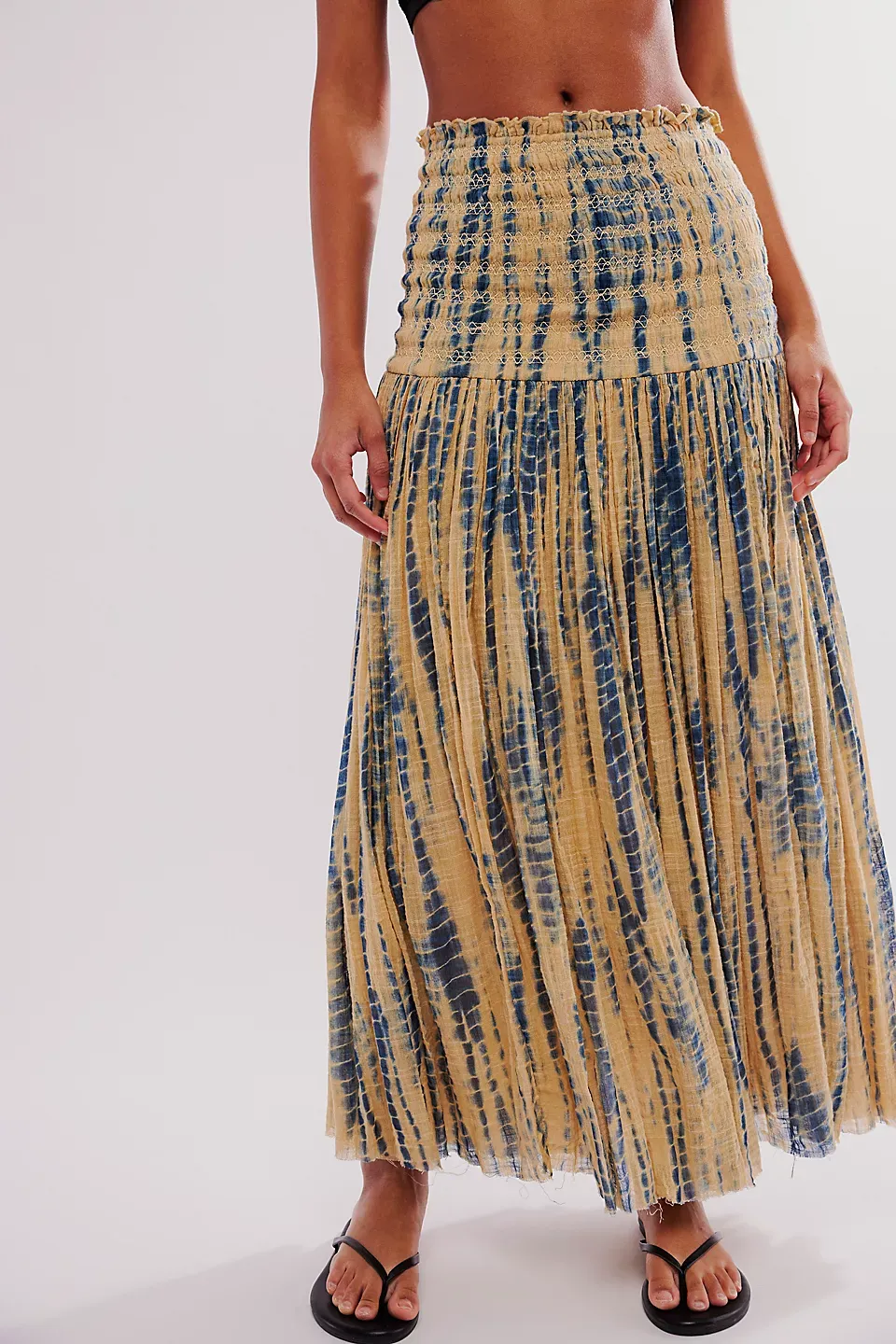 One skirt, endless ways to wear ― this stunning skirt from our FP One collection will turn heads with every wear.**Fit:** Slim at the bodice with billowy skirt design **Features:** Smocked waistband for ease, pleating throughout, classic tie-dye fabrication, can be transformed from a midi dress to a maxi skirt **Why We ? It:** Bold with platforms or off-duty with sporty sneakers, this style will be a go-to from this season to the next.