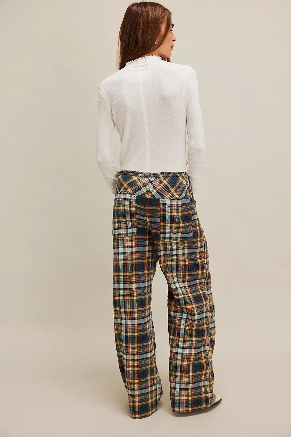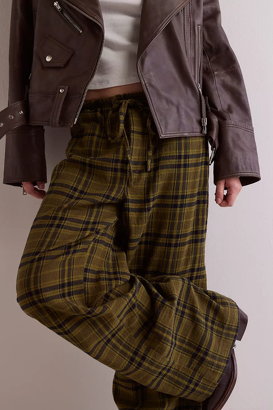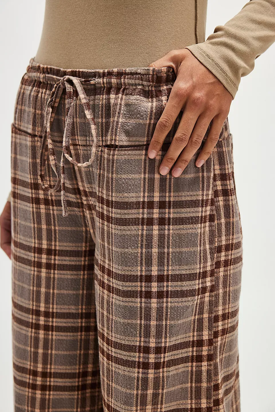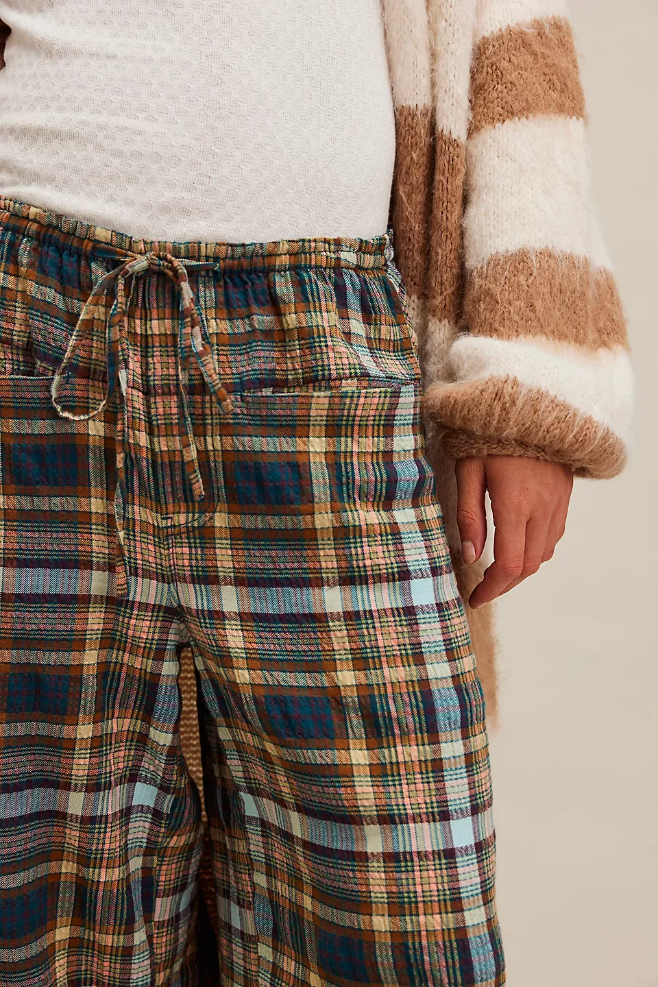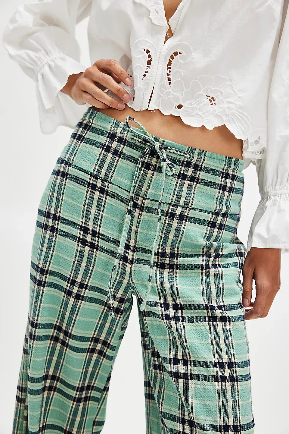 A perfectly plaid version of our Hudson Canyon Stripe Pants, this slouchy pair is featured in a high-rise fit and wide-leg style with a drawstring waistband. **Fit:** High-rise; wide, full-length legs **Features:** Soft cotton fabrication with wide plaid print throughout, adjustable drawstring waistband, pockets for hands, back-pocket detail **Why We ? It:** These billowy pants pair perfectly with your favorite tank and strappy sandals.