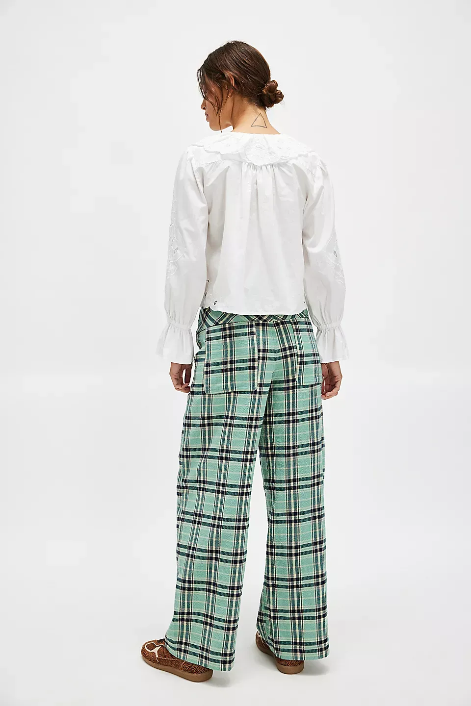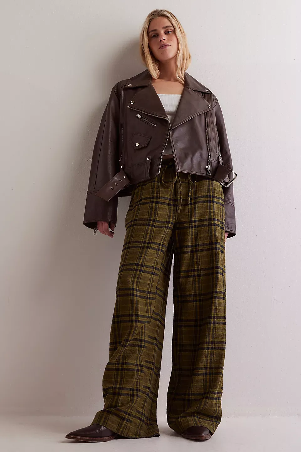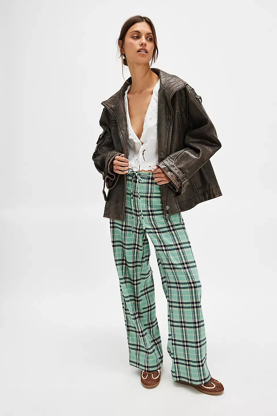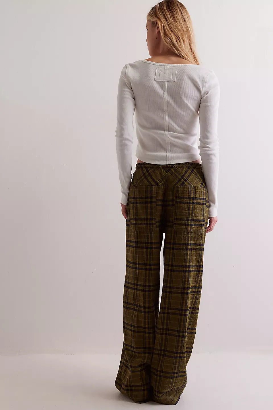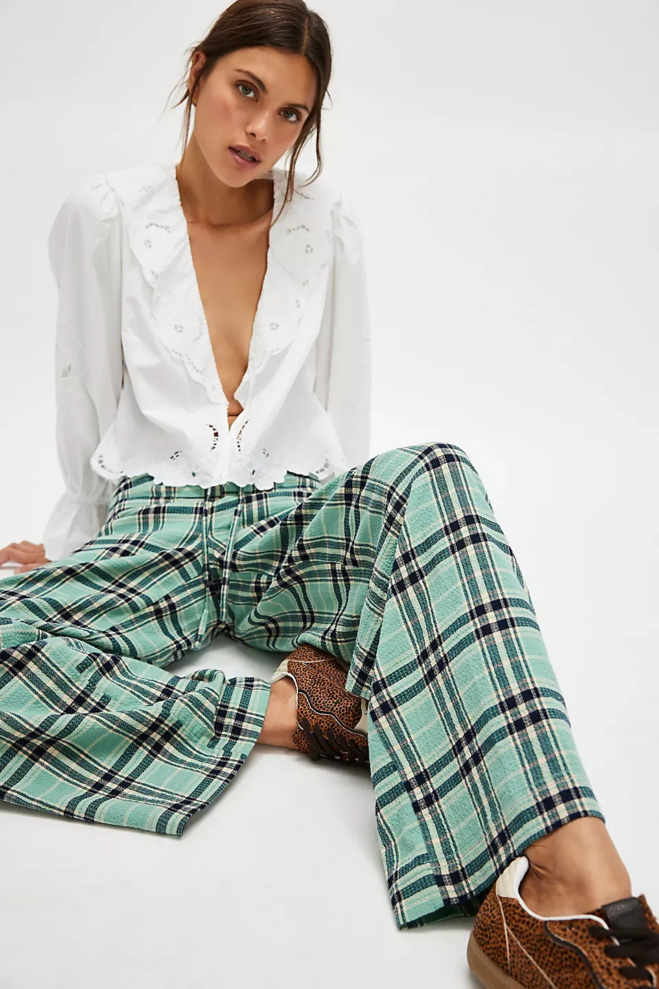 A perfectly plaid version of our Hudson Canyon Stripe Pants, this slouchy pair is featured in a high-rise fit and wide-leg style with a drawstring waistband. **Fit:** High-rise; wide, full-length legs **Features:** Soft cotton fabrication with wide plaid print throughout, adjustable drawstring waistband, pockets for hands, back-pocket detail **Why We ? It:** These billowy pants pair perfectly with your favorite tank and strappy sandals.