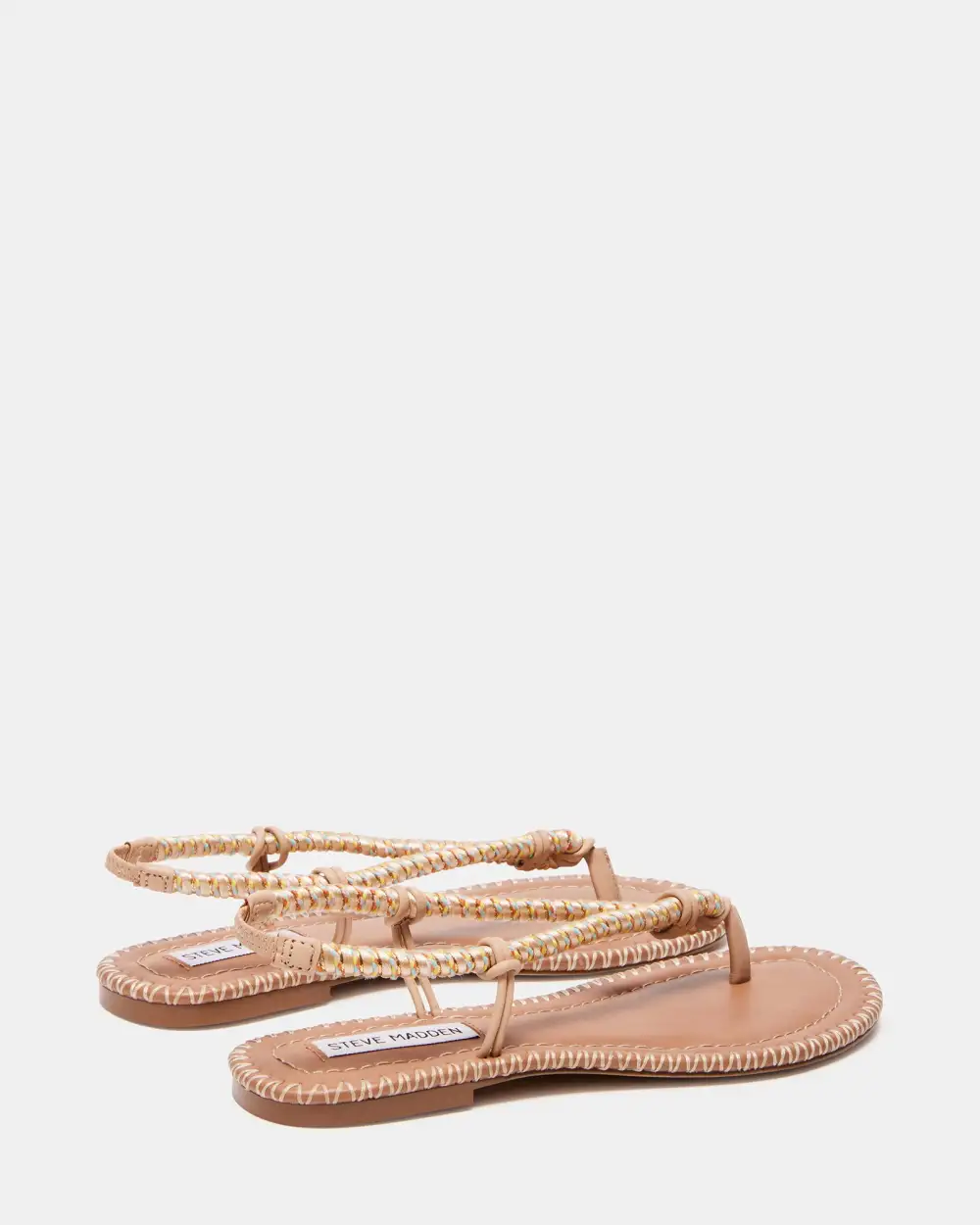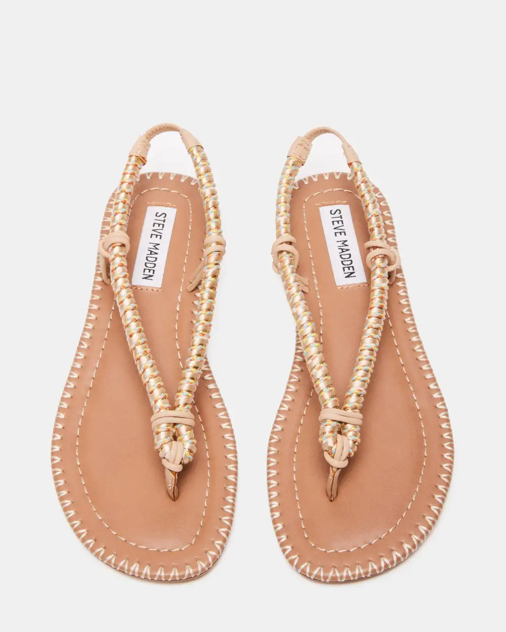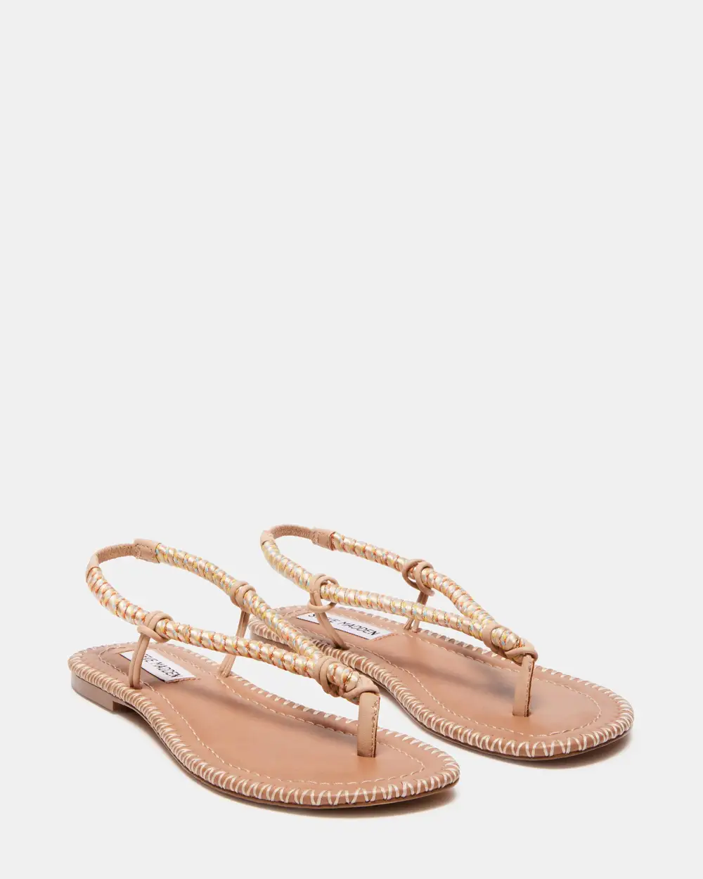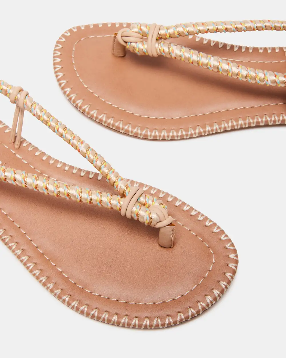 Whipstitching over the flat sole welt and cord wrapped straps with metallic highlights give the ALOHA slingback thong  a textured look.