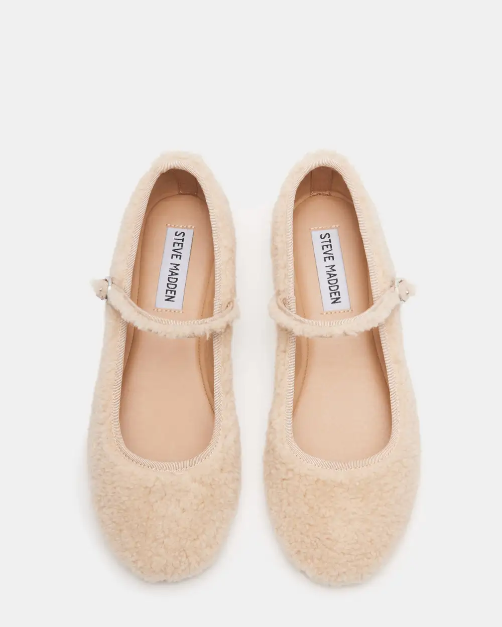 VINETTA is an easy and comfy design with a sole, a relaxed construction, and a slim buckle strap across the top. This faux shearling update adds a soft and fluffy texture to the look.