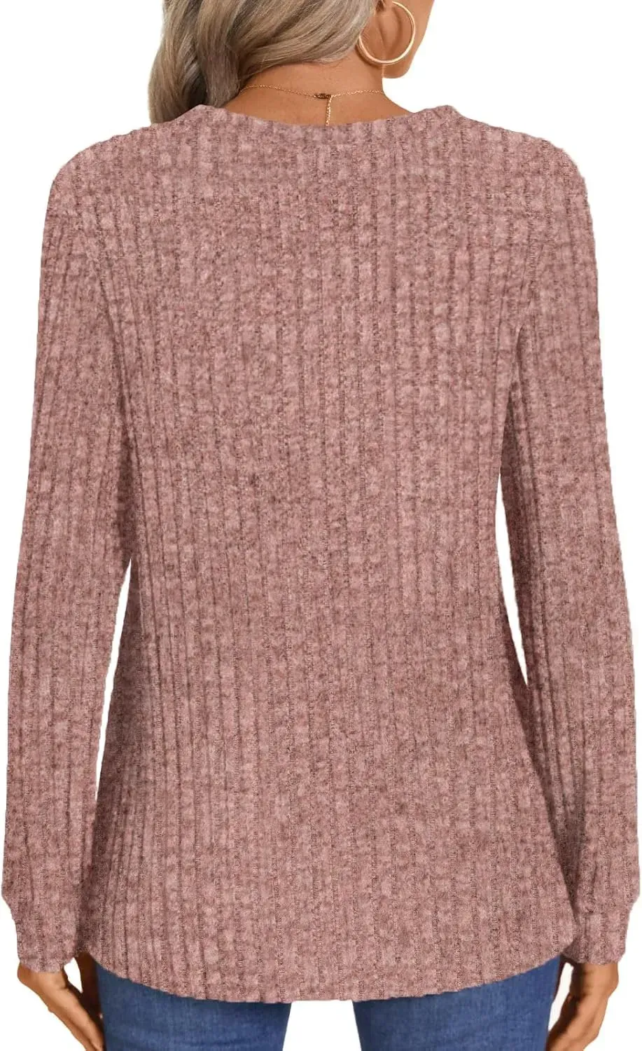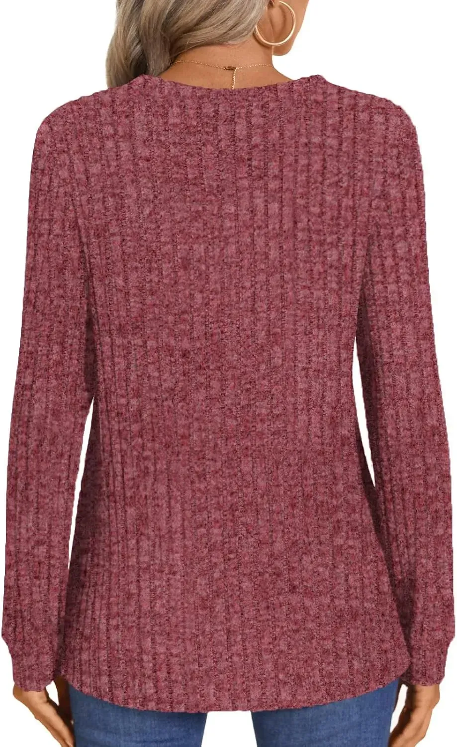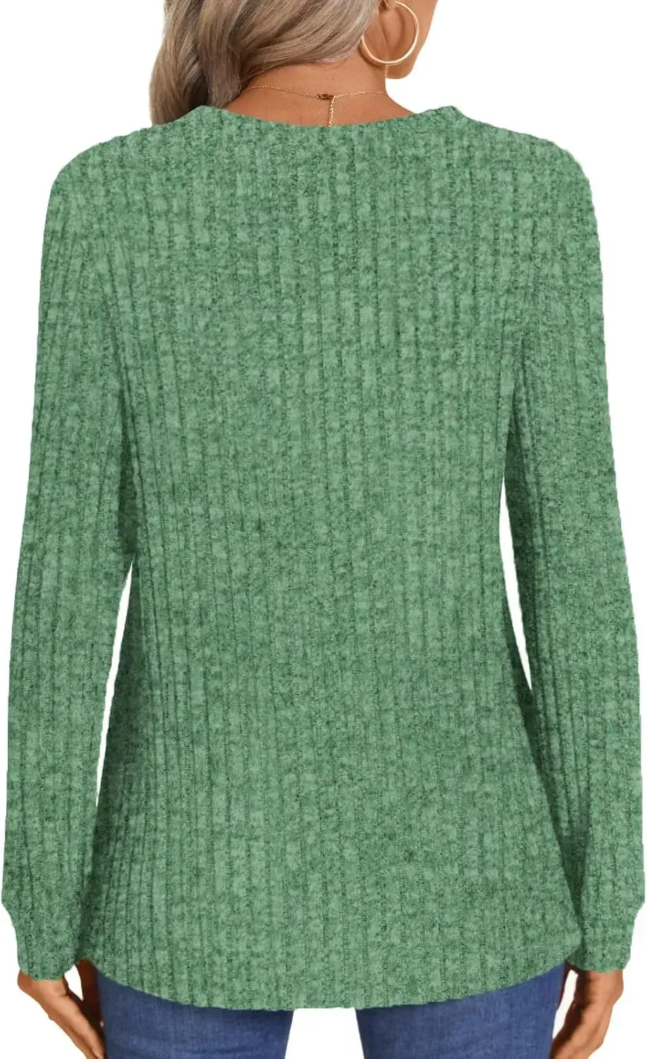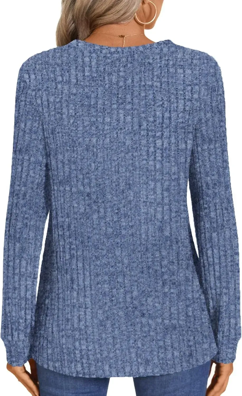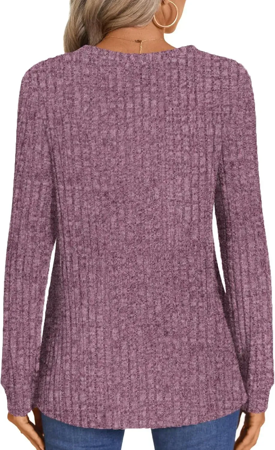 • HOTGIFT Womens 2024 Fall Winter Tunic Tops Long Sleeve Casual T-Shirts Soft Comfy Stripe Blouse Lightweight